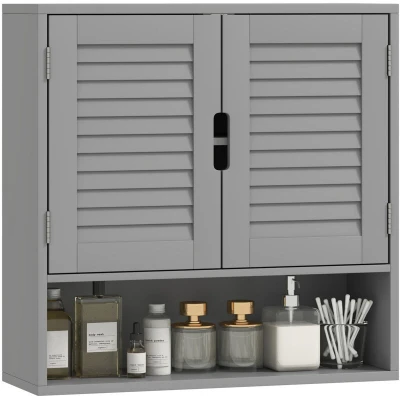 Tired of chaotic mornings in a cramped, cluttered bathroom? The constant search for items and the jarring slam of cabinet doors can disrupt your peace. The HOMCOM wall mounted bathroom cabinet helps you reclaim your space and serenity. Its wall-mount design clears your counters, while adjustable shelves organise your essentials. Specifications: ● Colour: Grey ● Material: MDF ● Overall Dimension: 60W x 20D x 60H cm ● Door Size: 28.2W x 40H cm ● Inner Space: 57.2W x 16.2D x 40.5H cm ● Lower Compartment Size: 57.2W x 18.4D x 15H cm ● Shelf height adjustment: 6.4 cm ● Weight capacity: 4 kg (per shelf), 12 kg (overall) ● Item Label: 837-698V81GY Features: ● Includes a 3-position adjustable shelf to customise storage for various toiletries ● Compact wall-mounted design saves valuable floor space ● Crafted from stable MDF, ensuring long-lasting use and reliability ● Stylish grey finish and louvered door elevate your bathroom decor ● Holds up to 12kg overall, securely storing all your daily