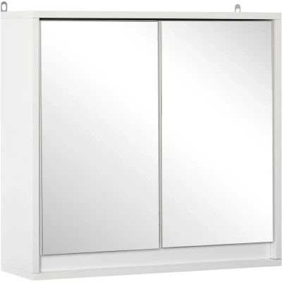 HOMCOM Bathroom Mirror Cabinet Wall Mounted Storage Shelf Cupboard Double Door, White