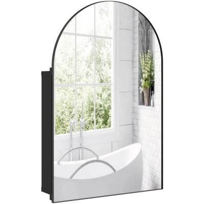 HOMCOM Bathroom Mirror Cabinet with Arched Wall Black