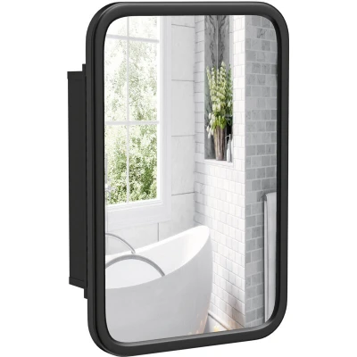 Bathroom wall cabinet with a stylish wide frame brings modern beauty to any room. Worrying about moisture damage in the bathroom is a thing of the past this cabinet's powder-coated metal construction offers lasting durability. The HOMCOM bathroom mirror cabinet features a tempered mirror for added safety and a door that opens a full 180 degrees, providing a complete, easy view of everything inside. This provides both enhanced security and convenience Specifications: ● Colour: Black ● Material: Tempered Aluminium Mirror, Metal ● Overall Dimension: 50W x 12D x 76H cm ● Mirror Size: 70L x 44L x 0.3D cm ● Cabinet Inner Size: 46W x 9D x 46H cm (each shelf 15.5 cm) ● Weight Capacity: 9 kg (Overall) 3 kg (Shelf) ● Item Label: 834-926V00BK Features: ● Features a bold, minimalist wide frame design for a modern 3D look ● Crafted from powder-coated metal, suitable for humid environments like the bathroom ● The door opens a full 180° for easy access to your items ● A tempered metal mirror offers