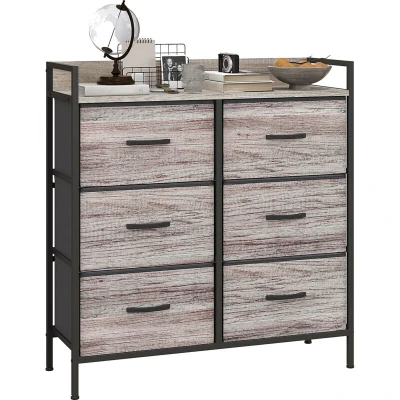 HOMCOM Bedroom Chest of Drawers, Fabric Dresser with 6 Storage Organiser Unit Open Shelf and Metal Frame for Living Room, Entryway, Grey Wood Effect