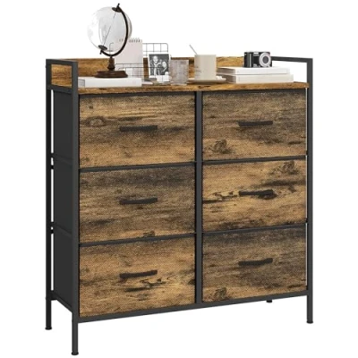 HOMCOM Bedroom Chest of Drawers, Fabric Dresser with 6 Storage Organiser Unit Open Shelf and Metal Frame for Living Room, Entryway, Rustic Brown