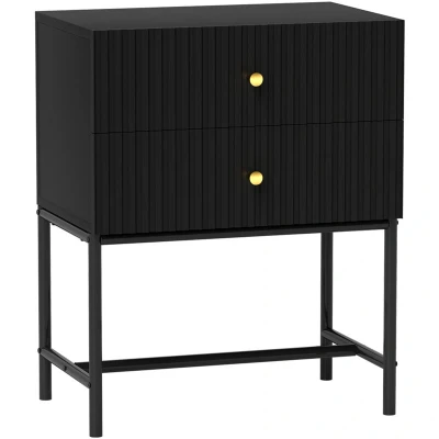 HOMCOM Bedside Table with 2 Drawers, Modern Cabinet Storage and Metal Legs for Bedroom, Living Room, Black