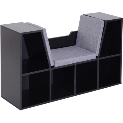 HOMCOM Bookcase Storage Shelf with Cushioned Reading Seat, Cube Bookshelf Organizer for Bedroom Living Room, Black