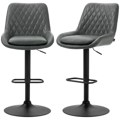 HOMCOM Breakfast Bar Stools Set of 2 with 51x40cm Wide Seat, Height Adjustable Kitchen Counter Chairs, Retro Swivel Upholstered Barstools Back, Footrest and Steel Base, Dark Grey