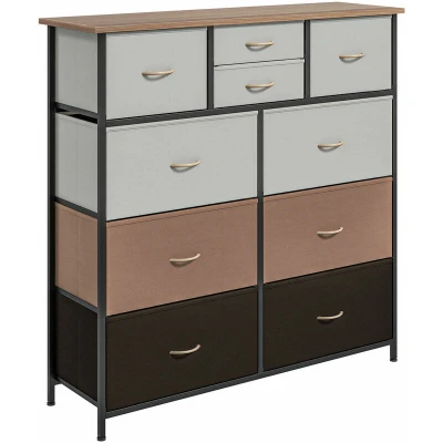 HOMCOM Chest of Drawers for Bedroom, Fabric Dresser, 10 Drawer Storage Organizer Unit with Foldable and Steel Frame, Multicolour
