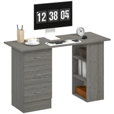 ManoManoGeneral description The HOMCOM 120cm Computer Desk is a stylish and functional workstation designed to enhance your productivity. Featuring a sleek grey finish, it includes three shelves and drawers for ample storage, making it ideal for home offices or study areas. Other information