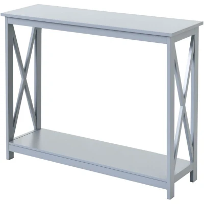 HOMCOM Console Table Hallway Desk w/Storage Shelf, X Design for Living Room Entryway, Grey