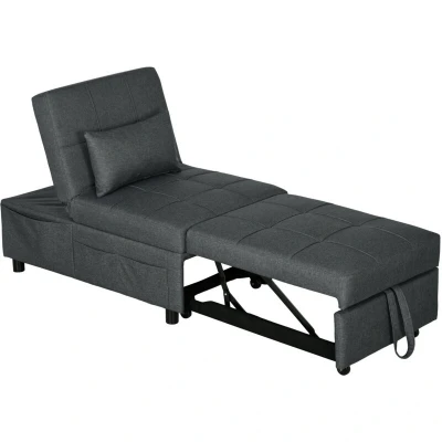 HOMCOM Convertible Chair Bed with Padding Seat, 4 in 1 Multi Functional Sleeper Sofa Bed, Recliner Adjustable Backrest, Side Pocket, Wheels and Pillow, for Living Room, Grey