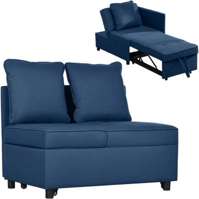 HOMCOM Convertible Single Sofa Bed with Thick Padded Seat, 3 in 1 Multi Functional Sleeper Chair Magazine Pocket, for Living Room, Blue