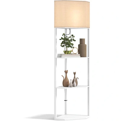 HOMCOM Corner Floor Lamp with Shelves, Modern Tall Standing Lamps for Living Room, Bedroom, Pull Chain Switch Bulb not Included, White