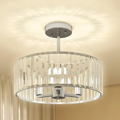 ManoManoTransform your home with the HOMCOM chandelier ceiling light, a blend of minimalist design and sparkling elegance. Featuring a metal frame and a dazzling crystal shade, this ceiling light for bedroom or living room adds a touch of glamour. Its semi-flush mount design is versatile, making it a stunning crystal light choice for any room. Specifications: ● Colour: Silver Tone ● Material: Metal, Crystal ● Overall Dimension: Φ39 x 32H cm ● Base Size: Ф15 x 2.5H cm ● Bulb Power: 40 W ● Voltage: AC 220-240 V, 50 Hz ● Item Label: B31-573V00SR Features: ● Minimalist design adds elegant simplicity to any room ● Crystal shade provides sparkling, inviting light ● Supports Three E14 Bulbs (Bulbs Not Included), 40W max each, for bright illumination ● Metal frame with crystal lampshade ensures durability and style ● Semi-flush mount suits living rooms, bedrooms, hallways and more