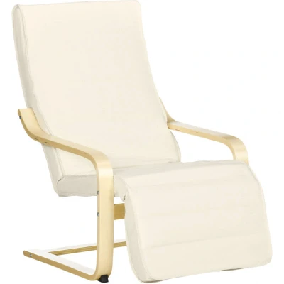 General description A simple chair, suitable for all over the home: this HOMCOM modern armchair features a stylish design and practical functionality. It comes with an adjustable leg rest that can be set to five different positions, allowing you to relax comfortably in various ways. The chair is built with a strong birch wood frame, ensuring durability and support as you sit. Additionally, it includes a long padded seat for enhanced comfort and is equipped with anti-slip feet to protect your floors. Technical specifications Colour: Cream White Material: Birch Wood, Sponge, Fabric Overall Dimension: 66.5W x 94D x 100H cm Seat Size: 55.5W x 51.5D cm Footrest Size: 55.5L x 33W cm Weight Capacity: 120 kg Other information Simple, modern design: great for home and office Five-level adjustable footrest Longline cushion with removable and washable cover Protective anti-slip feet Assembly required