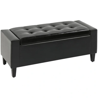 HOMCOM Deluxe PU Leather Storage Ottoman Bench Footrest Stool Large Space838 022V71BK