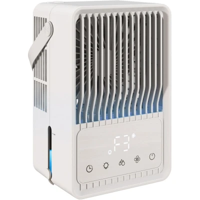 Does stale, dry air in your workspace leave you feeling drained and unproductive? It's a struggle when a simple breeze isn't enough to combat both heat and dryness. The HOMCOM portable air conditioner transforms your surroundings, combining a cooling mist with a gentle breeze and RGB ambient lighting. Its 550 ml tank and intuitive touch controls let you adjust your comfort effortlessly. This air cooler fan creates a personal oasis, improving your focus and well-being. Specifications: ● Colour: White ● Material: ABS, PP ● Overall Dimension: 15.3L x 11W x 23.2H cm ● Voltage: DC 5V ● Power: 6W ● Power Cord Length: 1.2 m ● Noise: 50-58dB ● Item Label: 824-149V00WT Features: ● This 4-in-1 device combines cooling, humidification, mini air conditioner, and 7-colour LED lighting ● Three wind speeds and two mist modes provide a refreshing hydrating breeze ● The 550 ml tank includes a silicone funnel for easy water refilling ● Use the 8h smart timer to customise your preferred cooling sleep