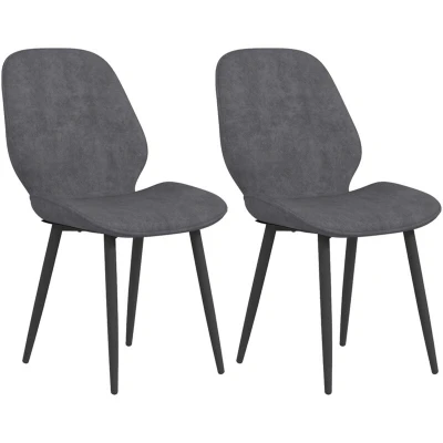 General description These HOMCOM dining chairs set of 2 combines relaxed style with functionality, making them a perfect addition to your kitchen or dining area. The armless design and slanted back provide a comfortable seating experience, while the soft velvet-feel upholstery adds a touch of luxury. Technical specifications Colour: Grey Material: Velvet (100% Polyester), Foam, Steel Overall Dimension: 46W x 56D x 86H cm Seat Size: 46W x 38D cm Seat to Floor Height: 47 cm Seat Back Size: 44W x 42H cm Weight Capacity: 120 kg Other information Powder coated steel legs for strong support Adjustable foot pads for stability on uneven floors Assembly required