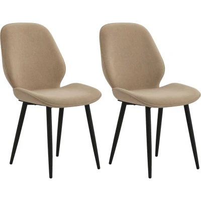 HOMCOM Dining Chairs Set of 2, Velvet Fabric Upholstered Kitchen with Solid Metal Legs for Room, Living Lounge, Light Brown