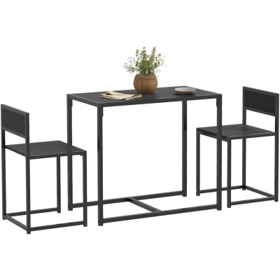 HOMCOM Dining Table and Chairs Set 2, Room Sets, Rectangular Space Saving 2 for Compact Kitchens, Steel Frame, Black