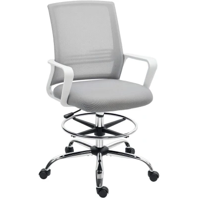 ManoManoGeneral description Discover the comfort of the HOMCOM Draughtsman Chair, featuring an adjustable seat height for tailored positioning. This high office chair includes a foot ring for added support and a breathable mesh cover with lumbar support to keep you cool and comfortable. Suitable as a perching stool or workshop stool, it's the smart choice for any workspace. Technical specifications Colour: Grey Material: Mesh Fabric (100% Polyester), Foam, Plastic Overall Dimension: 58W x 58D x 103-123H cm Seat Dimension: 47W x 48D x 55-75H cm Back Size: 44W x 50L cm Armrest Height to Seat: 17 cm Foot Ring Height: 21-41 cm Overall Weight Capacity: 120 kg Item Label: 921-825V70GY Usage Tilt function to gently rock back and forth for a break Adjustable seat height and foot ring height enhance comfort and posture Breathable mesh cover paired with lumbar support for back relief Mid-density foam padding offers cushioned, supportive seating Swivel seat and wheels allow easy mobility around