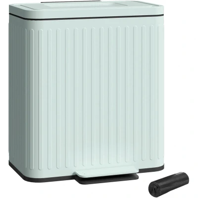 HOMCOM Dual Kitchen Bin, 2 x 20L Double Bin for Recycling and Waste, Fingerprint proof Pedal with Soft Close Lid, Removable Inner Buckets, Rubbish Bags, Green