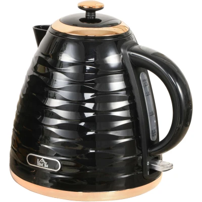 HOMCOM Electric Kettle, 1.7L, Fast Boil, 3kW Water Kettle with Removable Washable Anti scale Filter, Auto Shut off, 360 Swivel, BPA Free, Black Ripple Texture