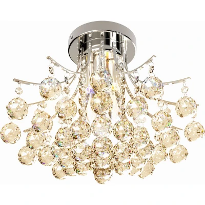 HOMCOM Elgant Crystal Chandelier Ceiling Light Flush Mount Pendant Lamp for Bedroom