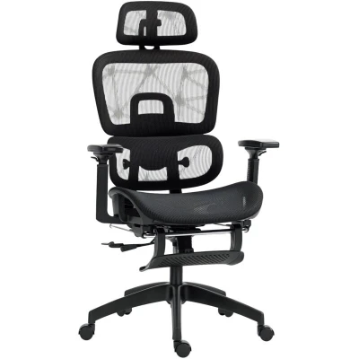 HOMCOM Executive Office Chair, Ergonomic Mesh High Back Desk Chair with Lumbar Support, Reclining Function, Swivel Computer 3D Armrest, Headrest, Footrest, Black