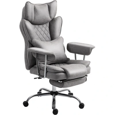 HOMCOM Executive Office Chair, Leathaire Reclining Computer Desk Chair with Lumbar Support Pillow, High Back, Footrest, Silent Swivel Wheels, Armrest, Height Adjustable for Home, Grey