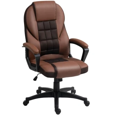 HOMCOM Executive Office Chair, PU Leather High Back Desk Swivel Computer Chair with Adjustable Height and Tilt Function, Brown