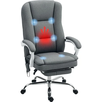 HOMCOM Executive Office Chair with 8 point Massage and Heat, Fabric Computer Desk Reclining Backrest, High Back, Height Adjustable, Swivel Wheels, Footrest, Remote, for Home, Grey