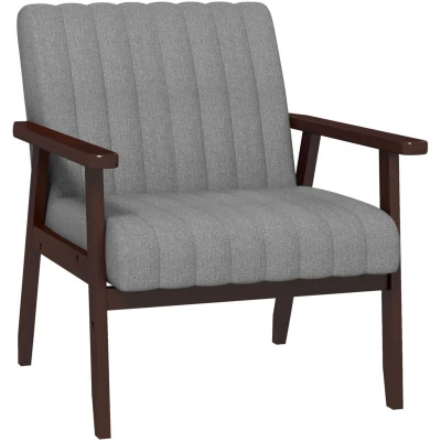 HOMCOM Fabric Accent Chair, Modern Tufted Armchair for Bedroom, Living Room, Upholstered Lounge Chair with Wood Legs, Grey