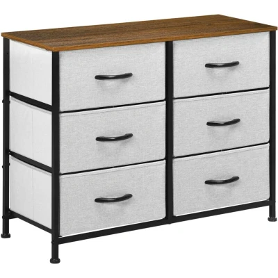 HOMCOM Fabric Chest of Drawers, Storage Industrial Bedroom Dresser with 6 Steel Frame and Wooden Top for Nursery, Living Room, Hallway, Grey