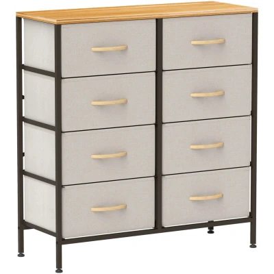 HOMCOM Fabric Chest of Drawers, Storage Industrial Bedroom Dresser with 8 Steel Frame and Wooden Top for Nursery, Living Room, Hallway, Cream White