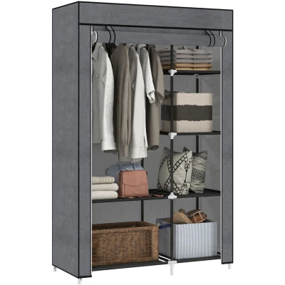 HOMCOM Fabric Wardrobe, Portable Wardrobe with 6 Shelves, 1 Hanging Rail, Foldable Closets, 103 x 43 162.5 cm, Dark Grey