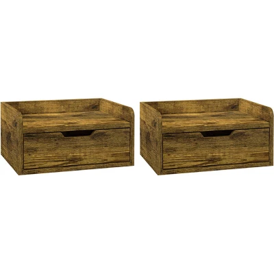HOMCOM Floating Nightstand Set of 2 Wall Mounted Bedside Table with Storage Drawer for Bedroom, Rustic Brown