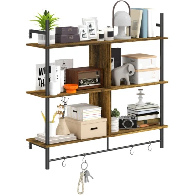 Elevate your space with the HOMCOM Floating Shelf, designed not just for functionality but also for aesthetic appeal. This three-tier shelf is ideal for showcasing your favorite items while maintaining a sleek wall-mounted design that saves valuable floor space. With a rustic brown finish, it effortlessly blends with various decor styles, making it a versatile addition to any room in your home.
