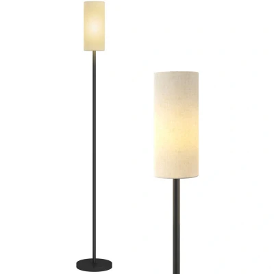 HOMCOM Floor Lamp for Living Room, Modern Standing with Linen Shade & Foot Switch, Minimalist Tall Pole Lampshade Bedroom, Office, White