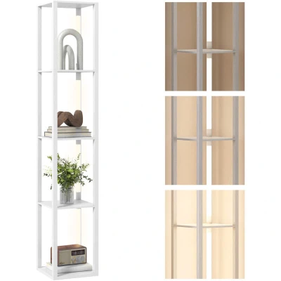 AmazonAdjustable LED lighting: Standing lamp is fitted with a 3000K warm white light - adjust from low to high to create the ambience you want. LED floor lamp light also moves - position it left and right Storage & Display: Featuring a four-tier shelf design, this LED floor lamp provides a stylish and practical way to organise and showcase your favourite items while keeping everyday essentials close at hand Space-saving: This shelf lamp maximises vertical space and creates a corner display area, doubling as a bedside display or corner shelf to blend effortlessly into any room for practical and cheerful living Sleek design: Crafted from MDF board with a sleek veneer finish, this floor lamp for living room blends elegance and durability, bringing a refined yet minimalist touch to any room Dimensions: 29L x 29W x 163H cm. Weight capacity: 2.3 kg. Assembly required
