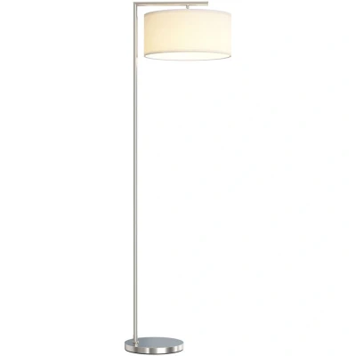 HOMCOM Floor Lamp, Modern Standing Lamp with Linen Lampshade, Silver Tone