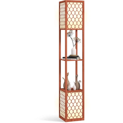 Amazon Marketplace2-in-1 design: Standing lamp with a light doubles as a storage unit. Great for living rooms, hallways and bedrooms. Two shelves: The living room lamp features shelves, allowing plenty of room for storage or displaying your possessions. Beautiful top and bottom lamp: A warm and inviting glow. Chain switch on this tall lamp for top lamp. Footswitch for top and bottom together. E27 bulb base, maximum 40W - bulbs not included. Sturdy: Floor lamp with shelves is made from MDF - suitable for everyday use in your home. Smooth and protective melamine coating to finish. Dimensions: Whole: 160H x 26L x 26W cm. Shelf: 26Lx 26W x 39H cm. Maximum load 5kg per tier. Assembly required.