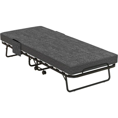 HOMCOM Folding Bed with Mattress, Foldable Guest on Wheels, Portable Single 10cm Side Pockets, Cover, 190 x 80cm, Dark Grey