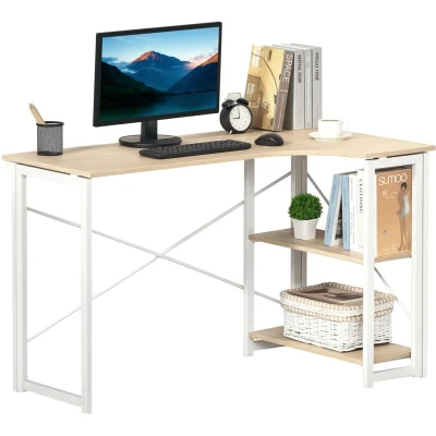 HOMCOM Folding Desk, L Shaped Corner Computer Desk with 2 Tier Storage Shelf for Home Office, Study Room, Workstation, Easy Assembly, 120 x 72.5 76.5cm, Oak Tone