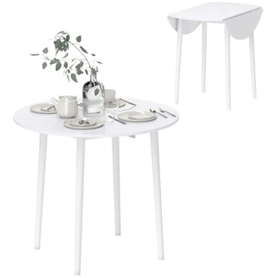 ManoManoGeneral description The HOMCOM Folding Dining Table is a modern and space-saving solution for small kitchens and dining rooms. With its round drop leaf design, it comfortably accommodates up to four people, making it perfect for family meals or gatherings. Other information