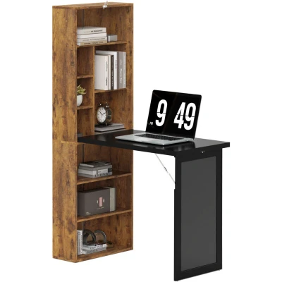 HOMCOM Folding Office Desk with Blackboard, Computer Shelf, Study Table for Bedroom Home Workstation, Rustic Brown