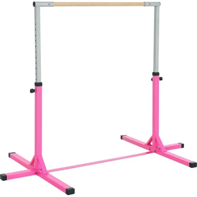 HOMCOM Height Adjustable Gymnastics Horizontal Bar For Kids Home Gym Training Children Junior Kip High Fitness Pink
