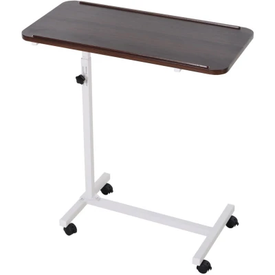 HOMCOM Height Adjustable Overbed Table with Wheels, C Shaped Laptop Desk, Portable Rolling Bedside for Living Room, Bedroom, Brown