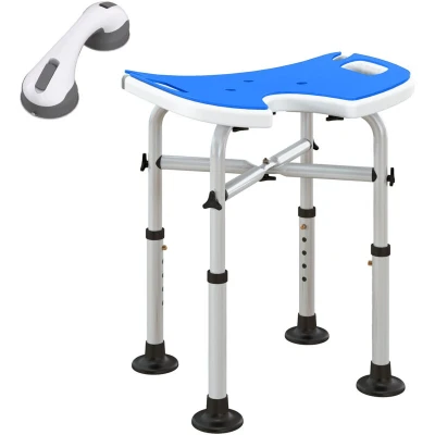HOMCOM Height Adjustable Shower Stool with Suction Grab Rail, Aluminium Chair U Shaped Padded Seat, Non Slip Bath for Elderly, Disabled, Seniors, Pregnant, Dark Blue