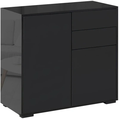 HOMCOM High Gloss Frame Sideboard, Side Cabinet, Push Open Design with 2 Drawer for Living Room, Bedroom, Black