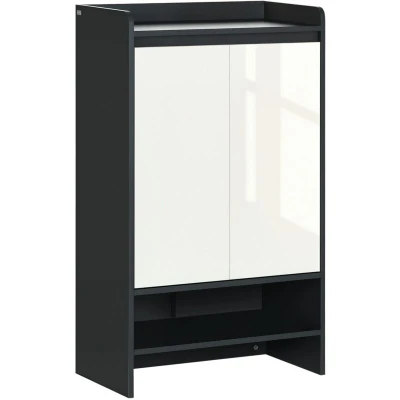 ManoManoGeneral description The HOMCOM Modern Storage Cabinet is an essential addition to any home, designed to meet your shoe storage needs efficiently. This stylish cabinet features high gloss white doors and a modern design that complements various home decor styles. With a combination of closed and open storage, it provides both functionality and aesthetic appeal. Technical specifications Colour: Grey, White Material: Particle Board Overall Dimensions: 60W x 32D x 100H cm Top Storage Dimensions: 57W x 30D x 5H cm Each Inner Shelf Size: 57W x 29.5D x 19/14/14/14H cm (middle level) Open Shelf Size: 57W x 31.5D x 14H cm Storage Capacity: 15 pairs of shoes (largest shoe size: UK 8.5) Weight Capacity: 10 kg (each shelf) Item Label: 837-294V00GY Installation Assembly required. Usage Store and organize up to 15 pairs of shoes. Display keys, photo albums, and plants on the countertop. Ideal for entryways, hallways, or narrow spaces. Other information Anti-tipping design ensures extra safety.