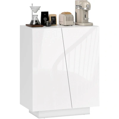 HOMCOM High Gloss Storage Cabinet, Freestanding Cupboard with Adjustable Shelves for Living Room, Bedroom, Hallway, White
